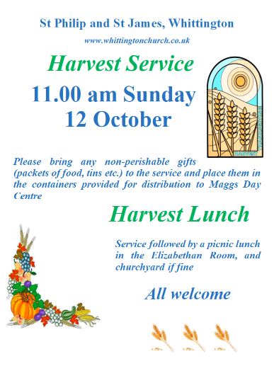 Sunday 12th October | Harvest Festival | 11:00am | Family Service |