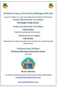 | Thursday 25th December | Christmas Day | 10:00am | Christmas Family Communion |