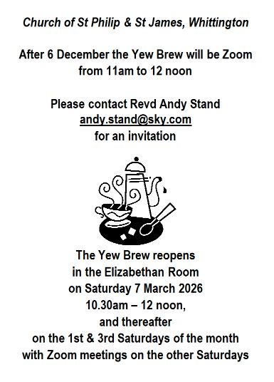 We look forward to having you join us for worship. Please take time to explore the website and, more especially, to visit us in person. We know it can be very difficult to pluck up the courage to walk into a new church for the first time, especially if you haven’t been to church for a while. We want you to feel welcome and comfortable amongst us. Come to the Great Yew Brew and meet us informally first if you prefer.